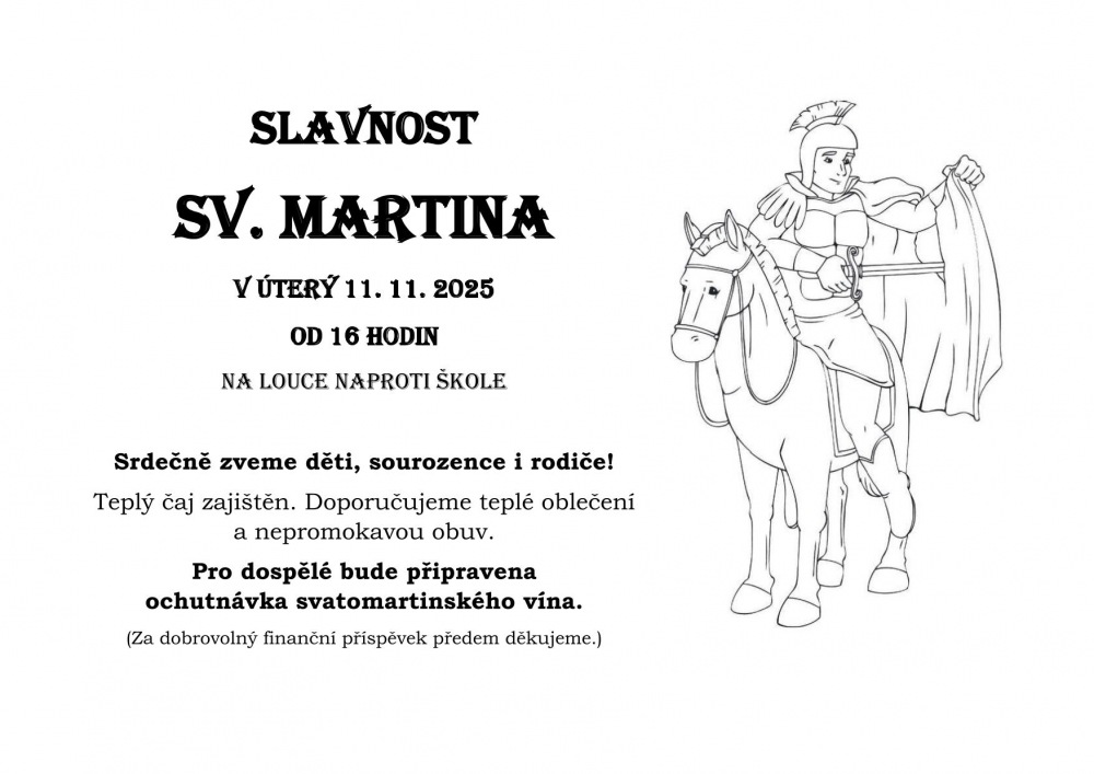 (08.11.2025) Slavnost sv. MartinaZveme vás na Svatomartinskou slavnost v úterý 11. listopadu 2025 od 16 hodin.